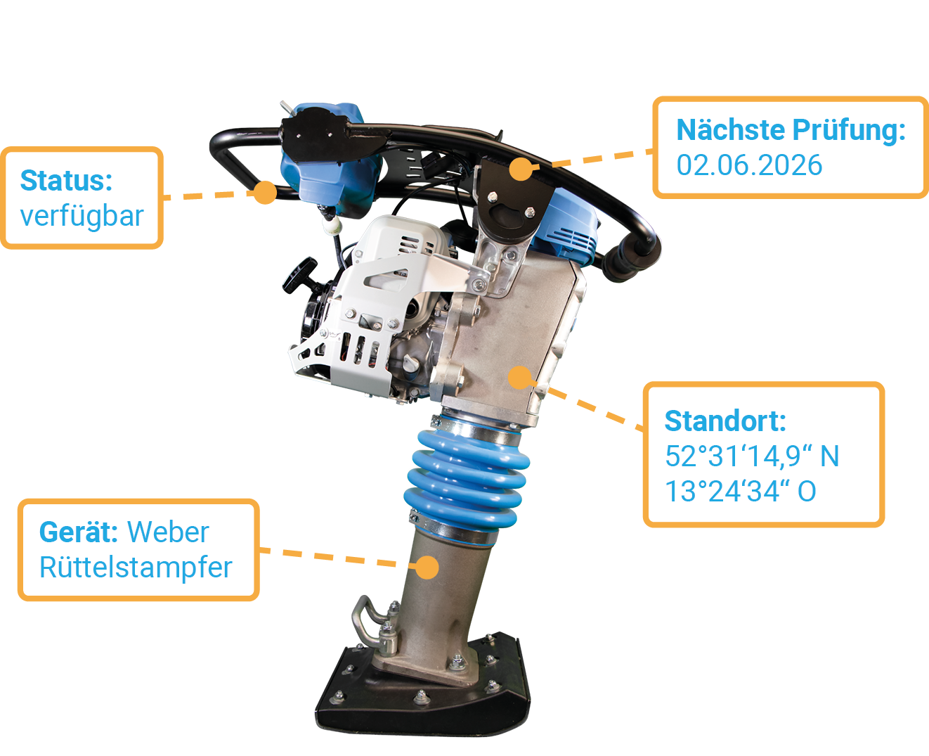 Die zamics Software verknüpft mithilfe von Transpondern alle Arbeitsmittel in einem zentralen System. Mit nur einem Scan haben Sie sämtliche Geräteinformationen und Dokumente sofort zur Hand, egal ob auf der Baustelle oder im Büro.